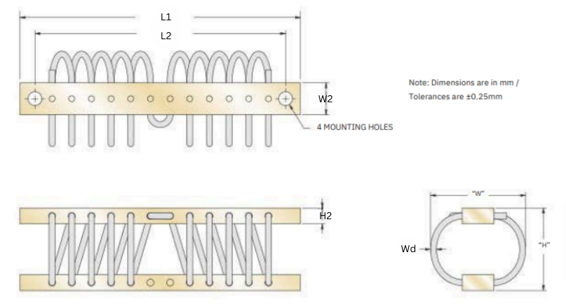 A Wire Rope Isolator is a robust and versatile vibration isolation device made from stainless-steel wire ropes that are looped and clamped between metal mounting bars. It is designed to absorb and reduce shock, vibration, and noise in various mechanical systems and equipment. These isolators are particularly valued for their durability, wide temperature tolerance, and ability to perform under extreme conditions